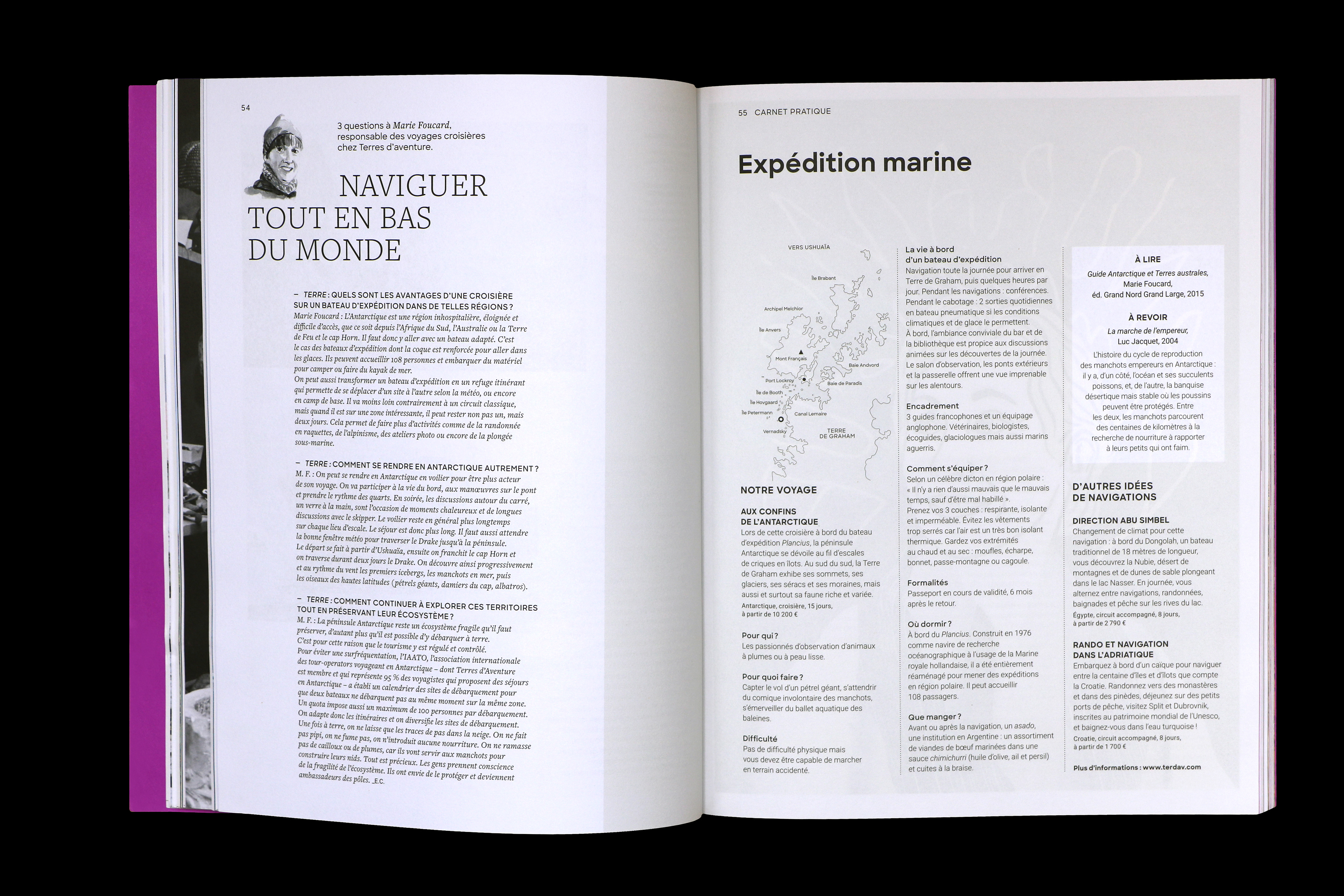 Maquette pour le 7e numéro du magazine Terre dédié au thème de l’errance.